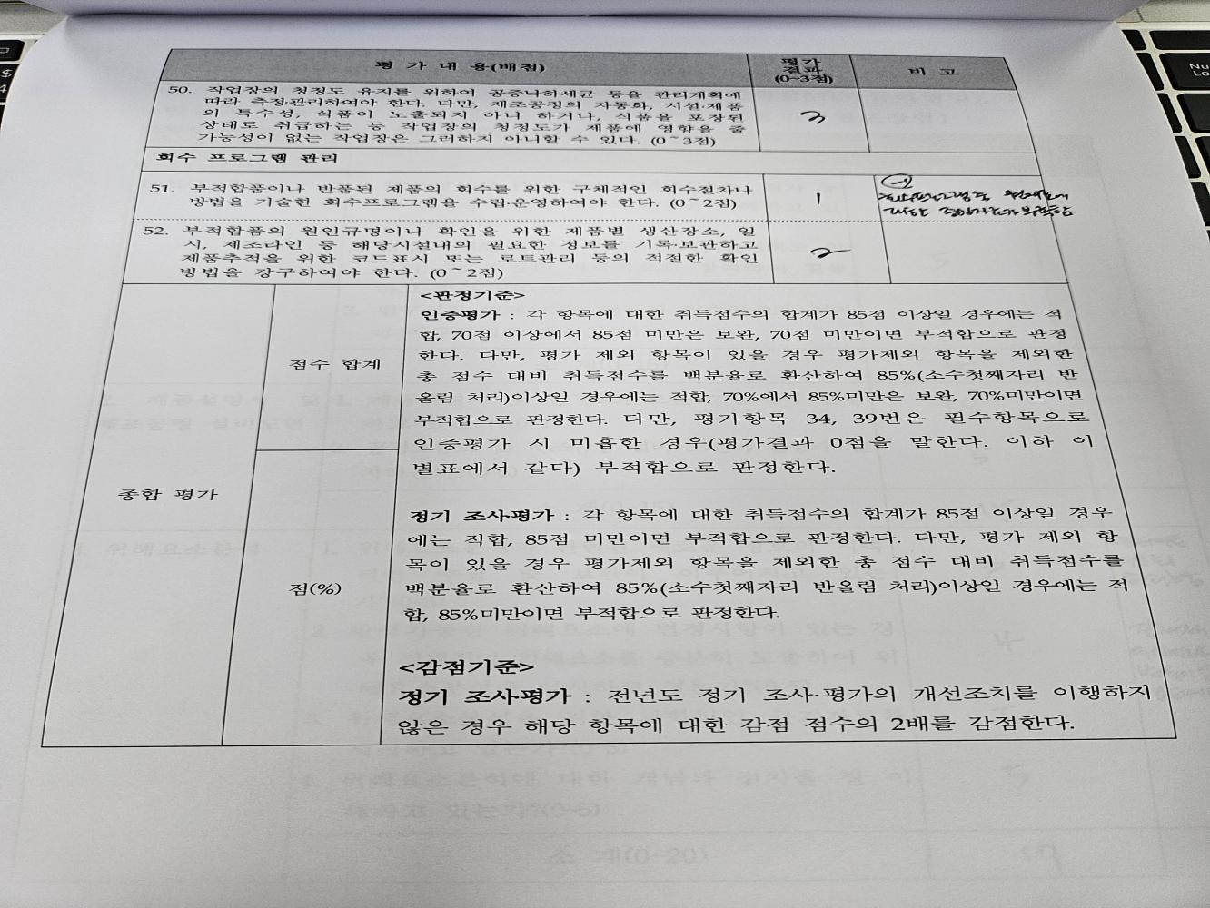 33. 주기적으로 HACCP 시스템에 관한 유효성이 평가되며, 타당성이 검증되는가