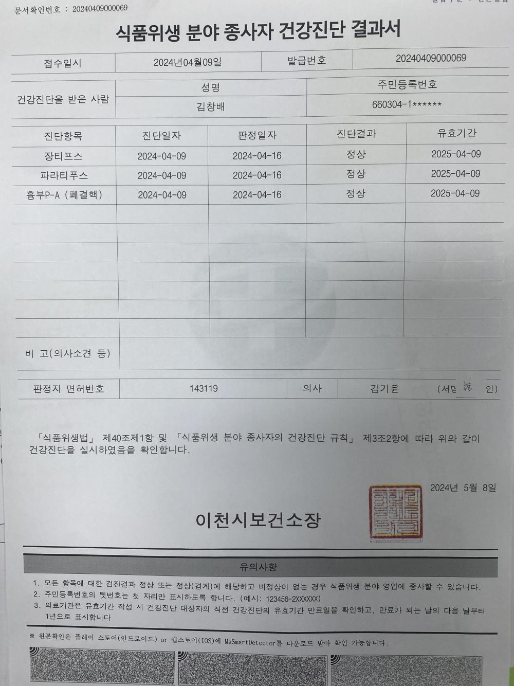 4. 작업장에 출입하는 모든 인원은 유효한 건강진단결과서를 구비하고 있는가