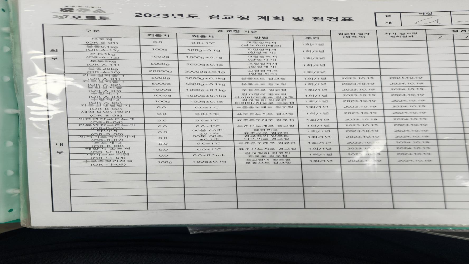 9. 계측 장비는 주기적으로 검교정되며, 관련 기록이 구비되어 있는가