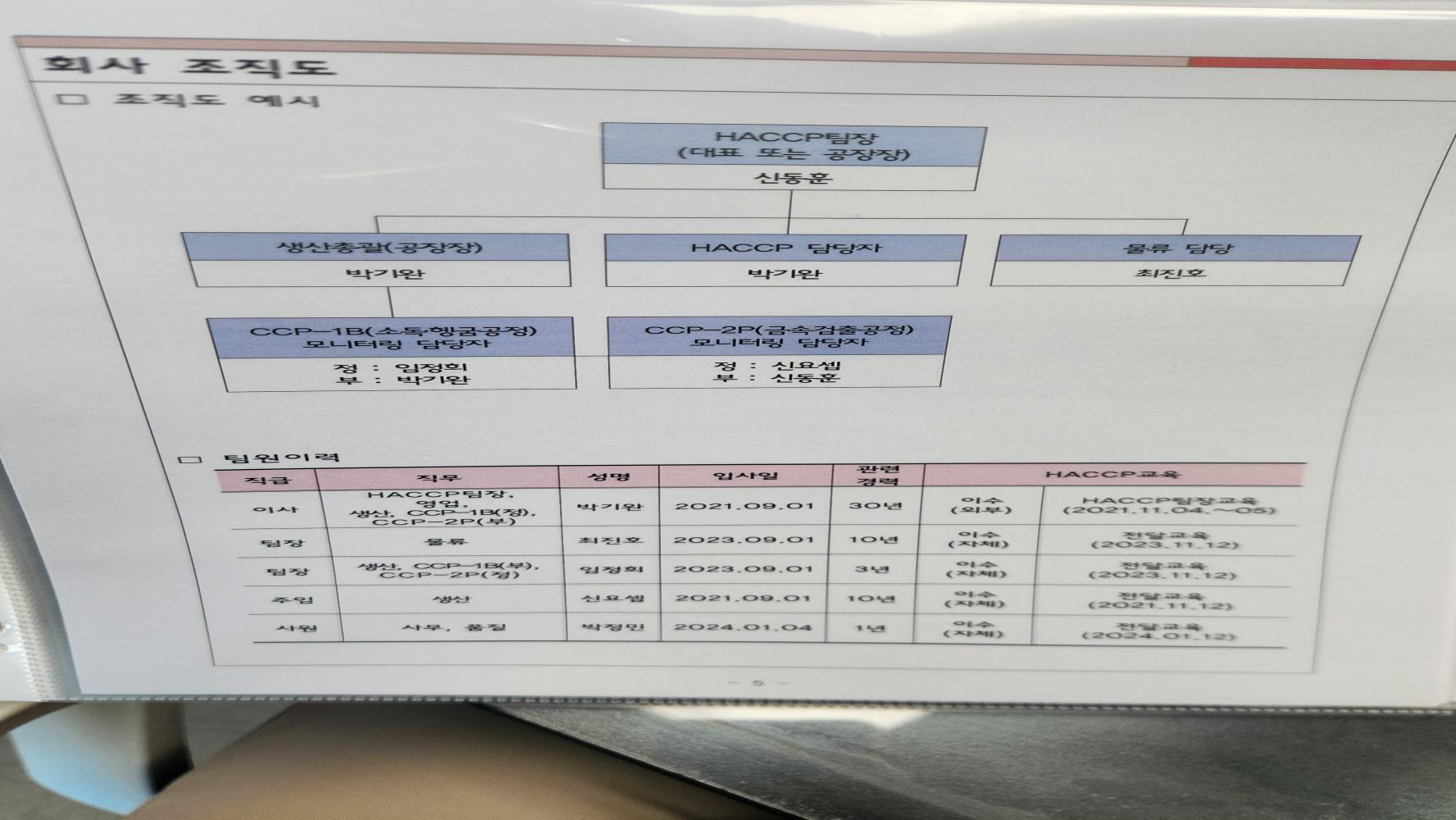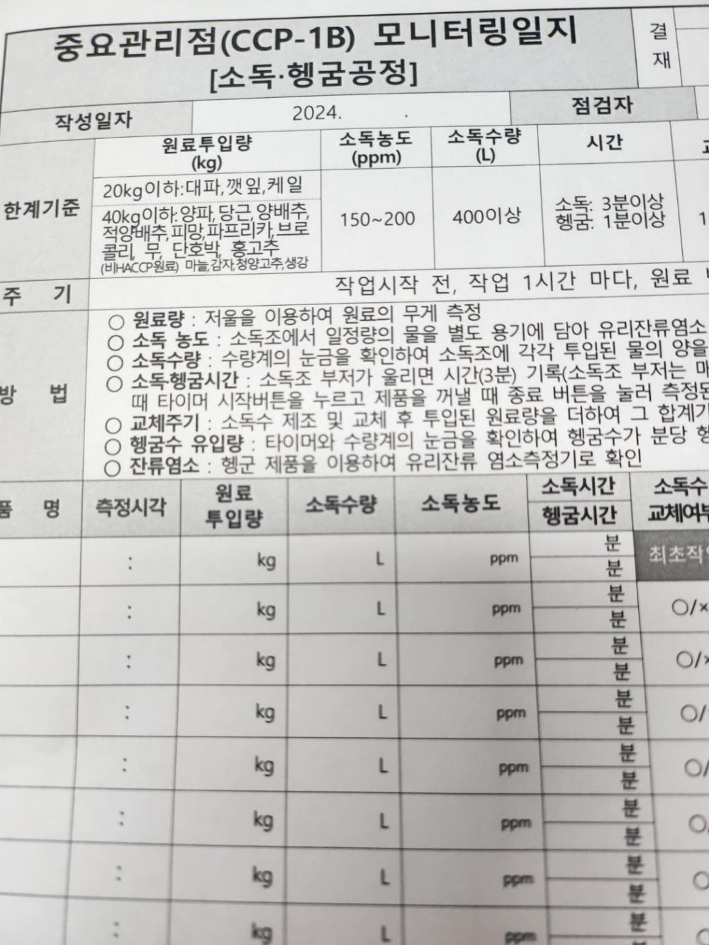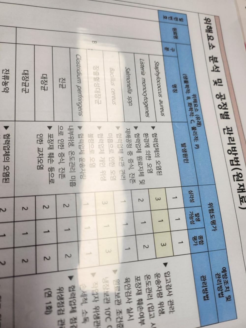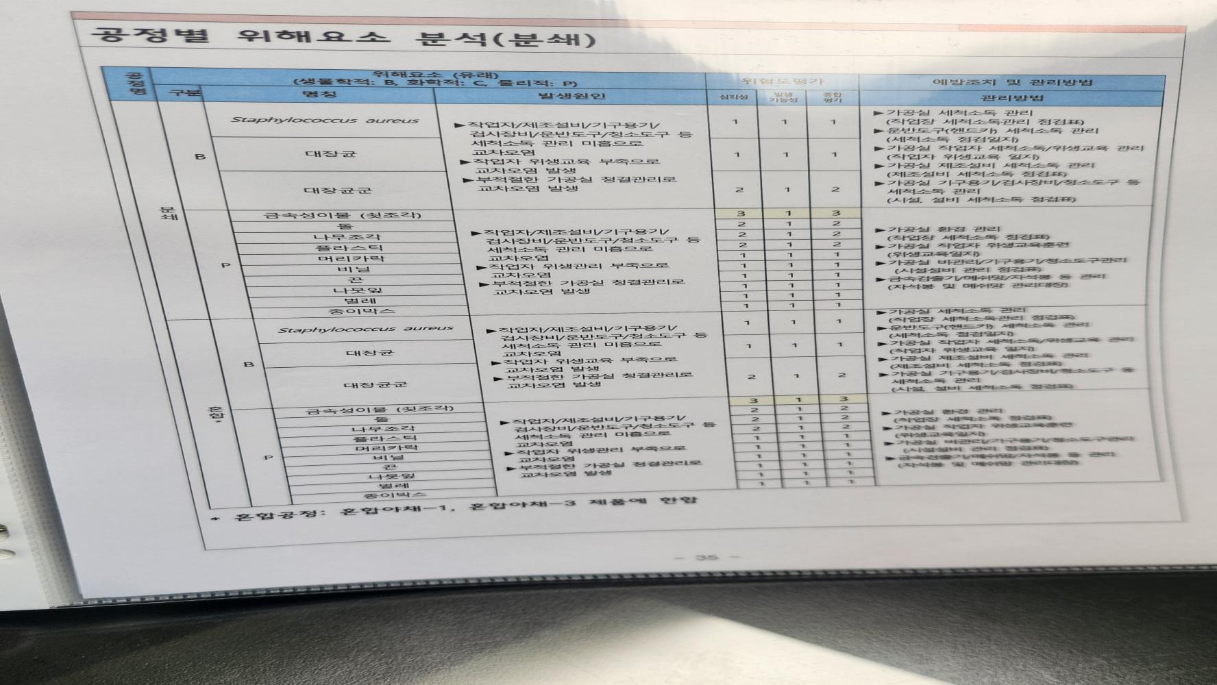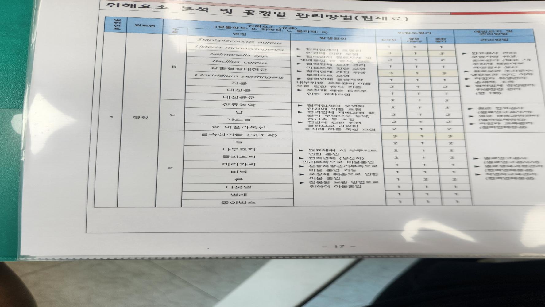 24. 원료별, 공정별 위해요소 분석이 실시되었으며, CCP 결정 및 운영이 적정한가