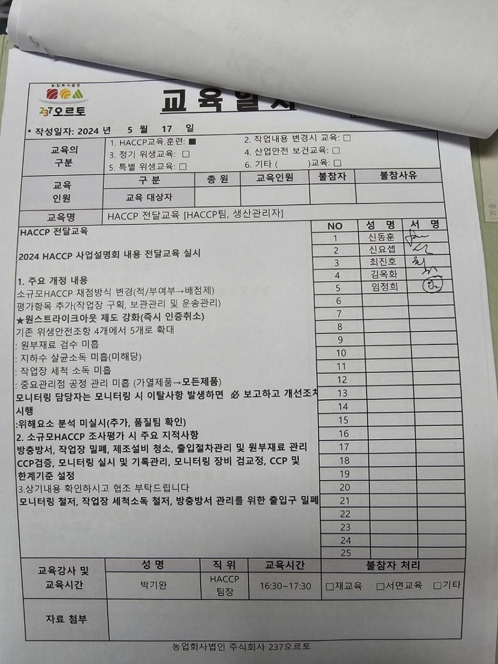 23. HACCP 교육이 주기적으로 이행되고 있는가