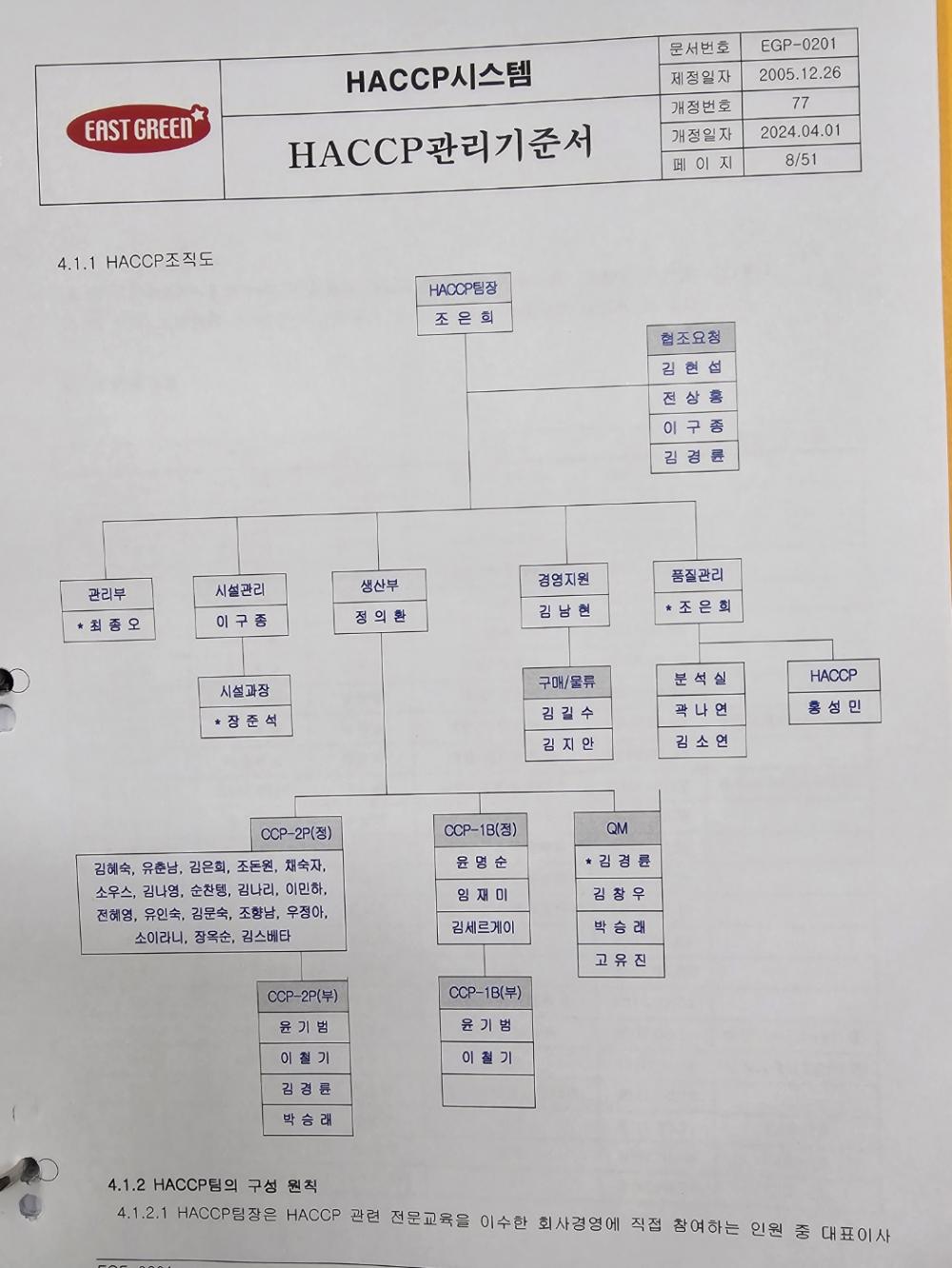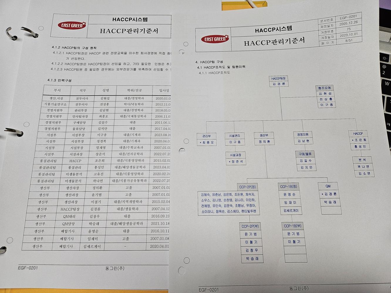 19. HACCP팀은 적절히 구성되어 있으며, 최신 버전으로 업데이트되어 있는가