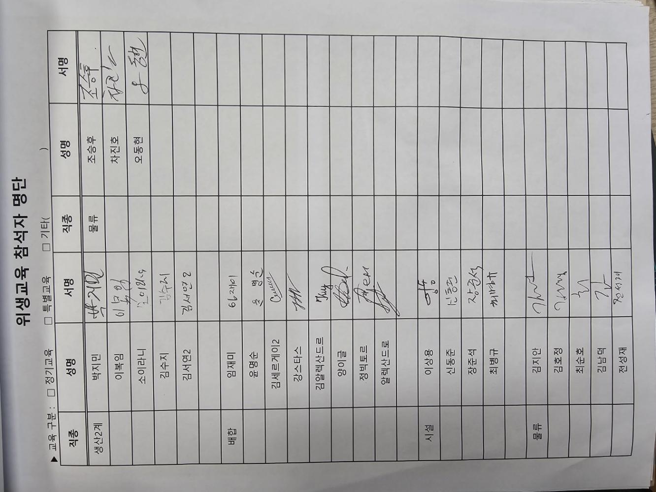 20. HACCP 교육이 주기적으로 이행되고 있는가