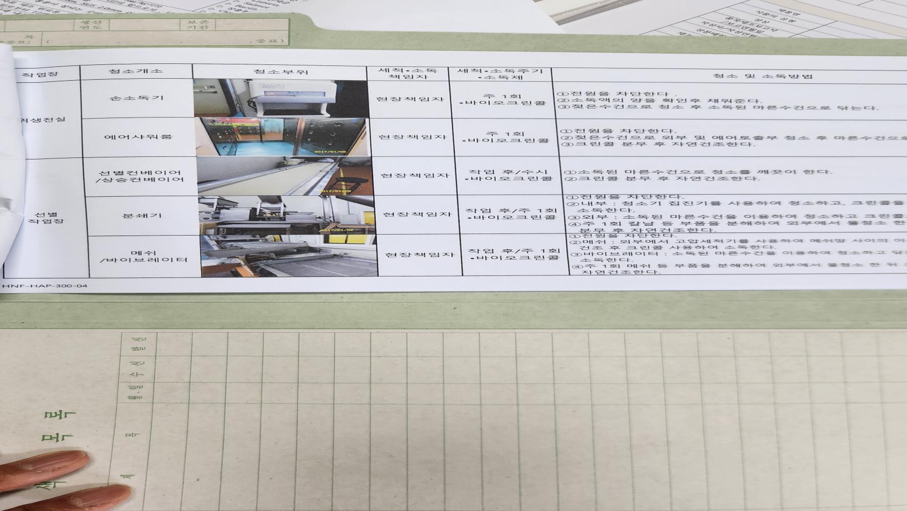 13. 설비는 청결하며, 자체 세척/소독 기준에 따라 관리되고 있는가