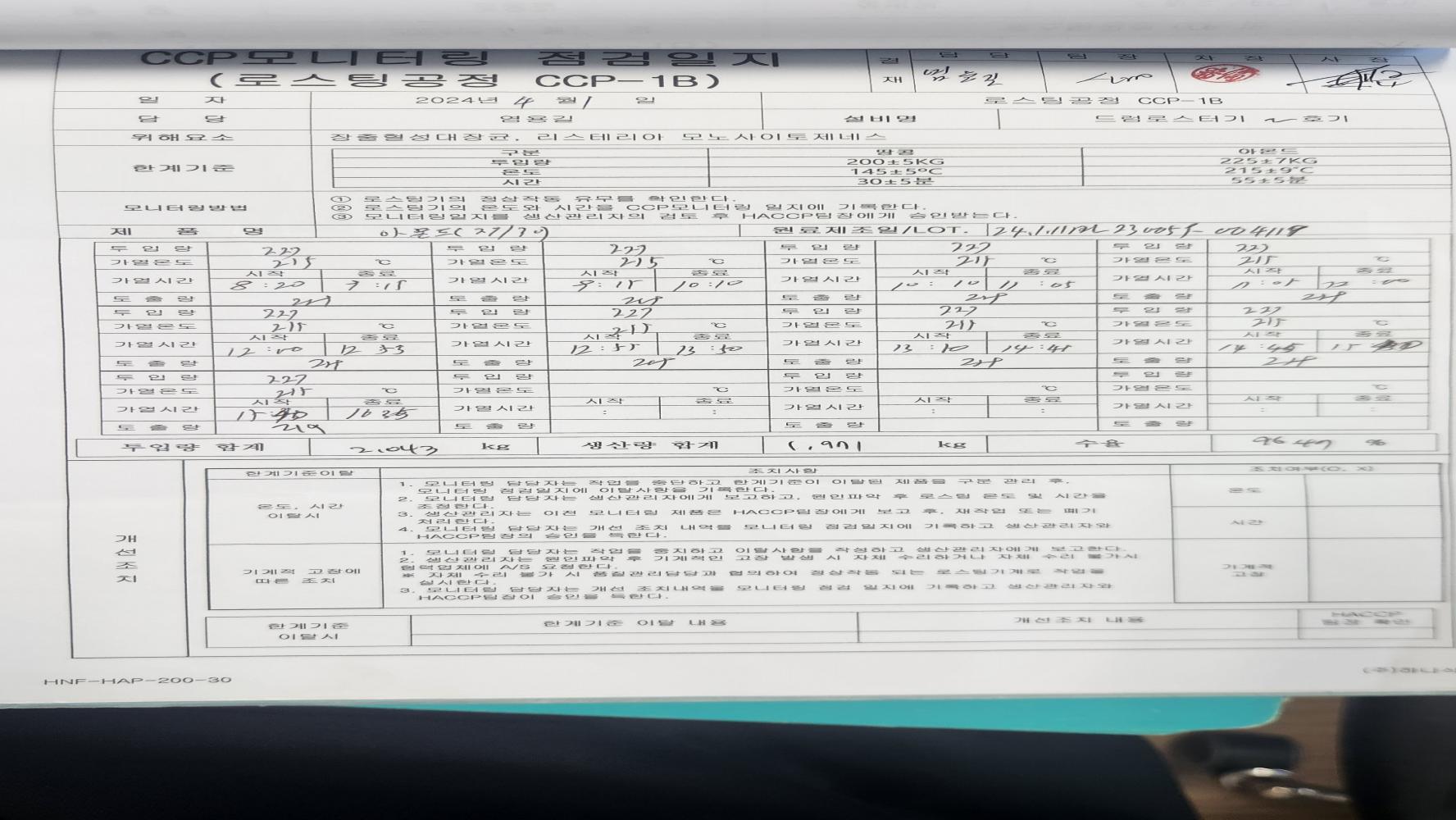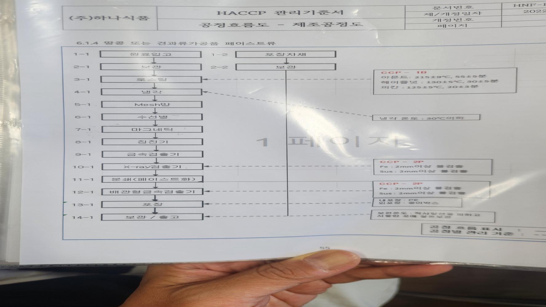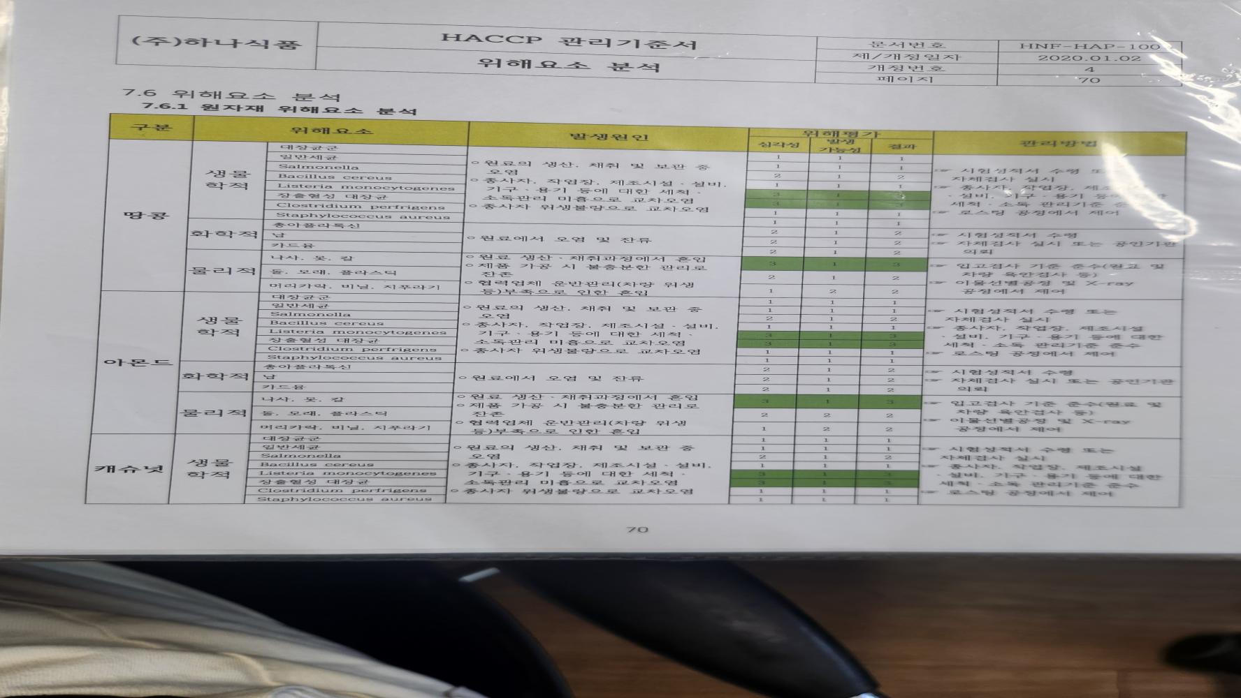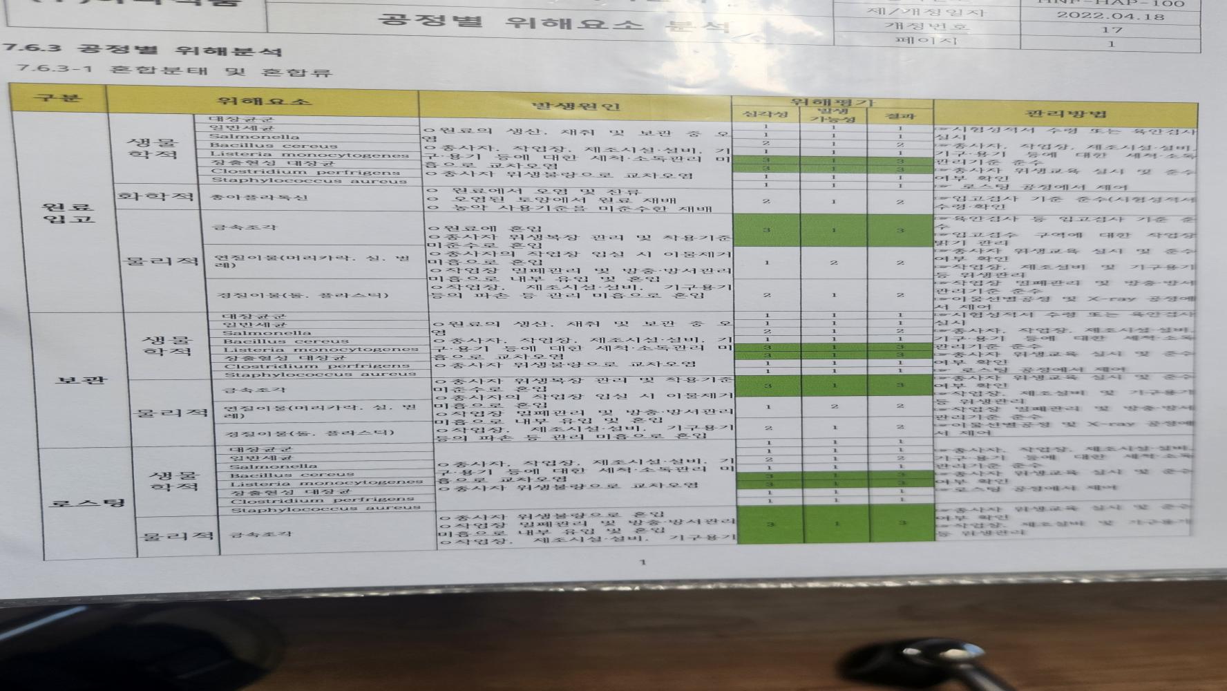 17. 원료별, 공정별 위해요소 분석이 실시되었으며, CCP 결정 및 운영이 적정한가
