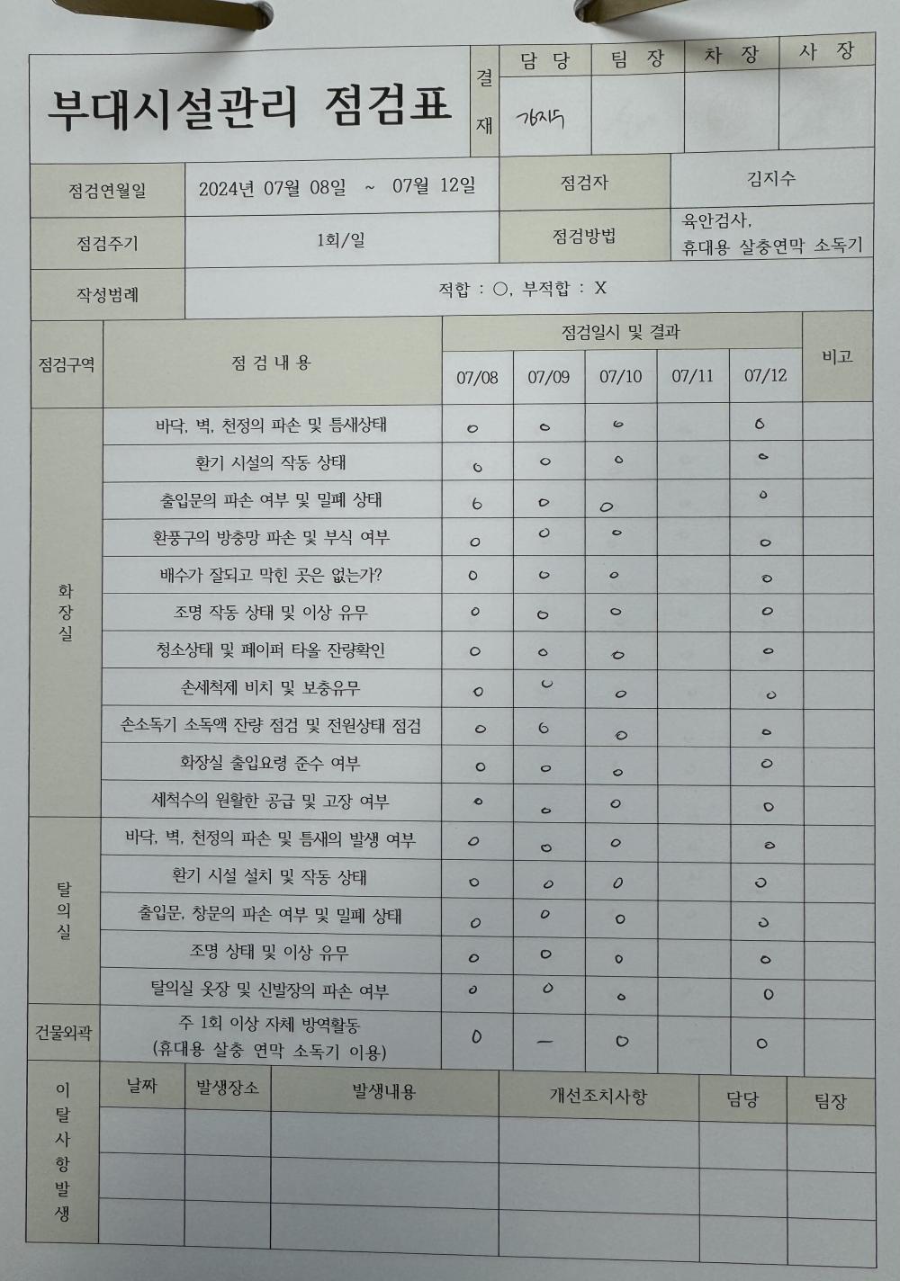 9. 부대시설은 청결하며 적절히 관리되고 있는가(휴게실, 탈의실, 화장실, 위생전실 외)