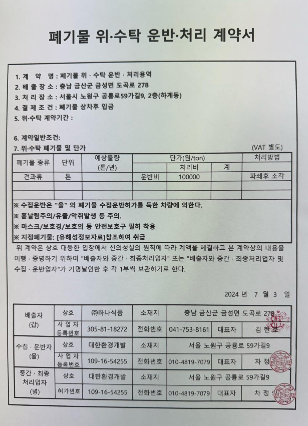 11. 폐기물/폐수는 적절히 처리되며, 관련 기록물이 구비되어 있는가