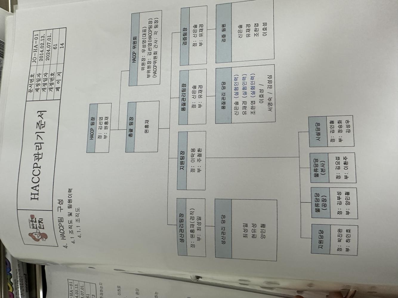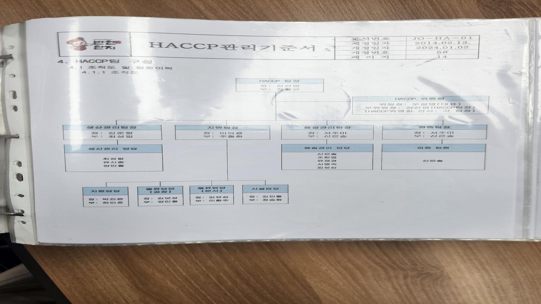 20. HACCP팀은 적절히 구성되어 있으며, 최신 버전으로 업데이트되어 있는가