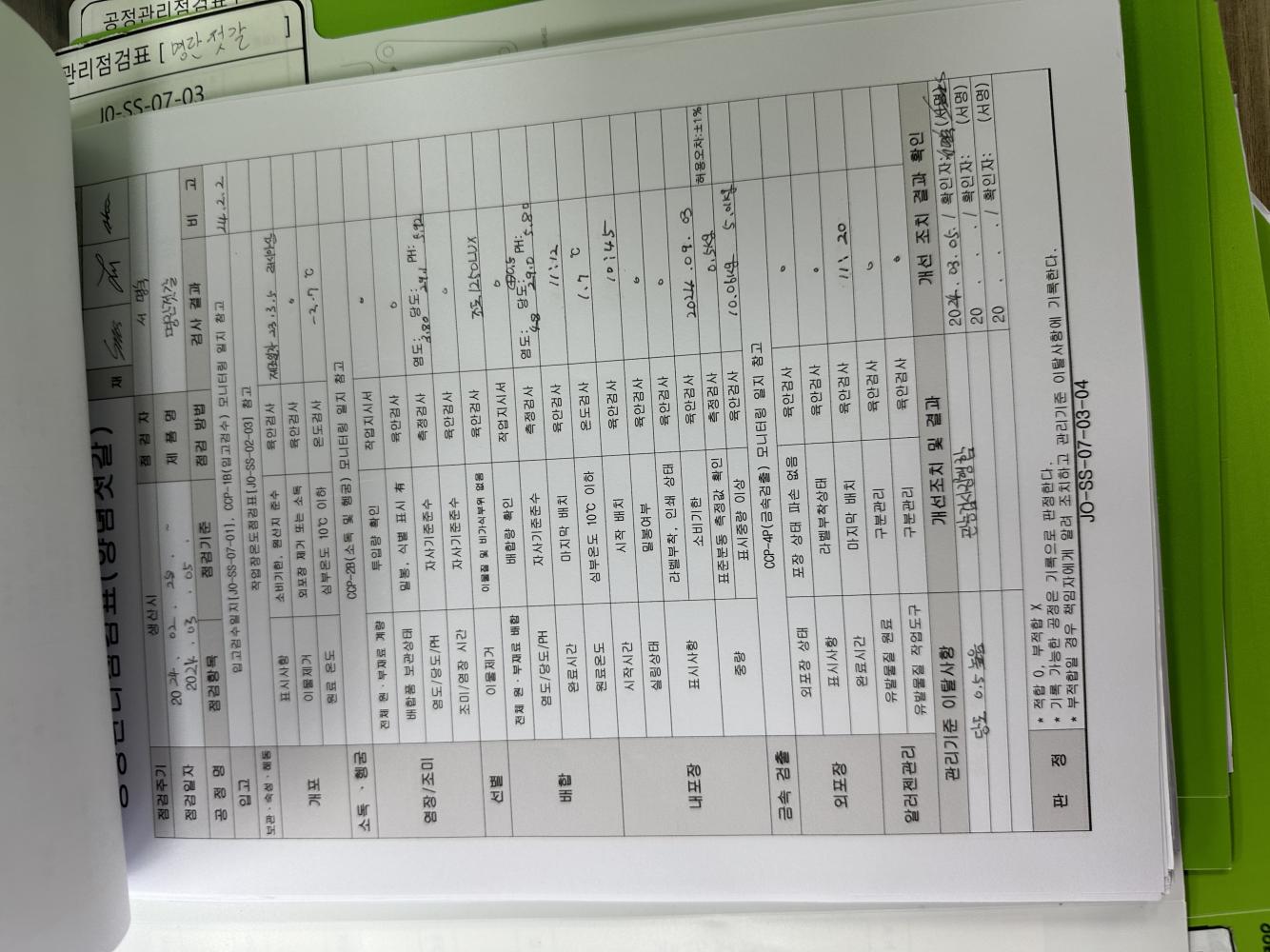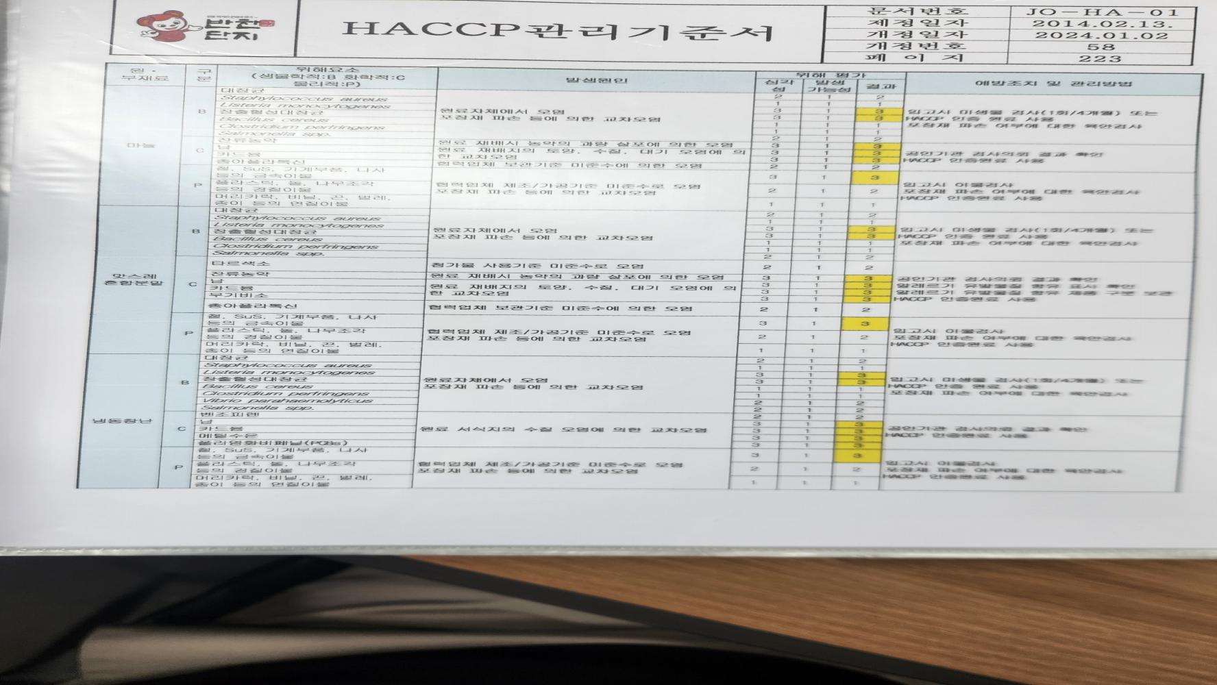 21. 원료별, 공정별 위해요소 분석이 실시되었으며, CCP 결정 및 운영이 적정한가