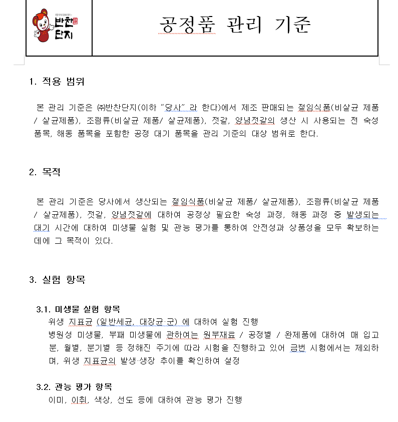5. 제품별 제조 공정 기준을 준수하고 있는가