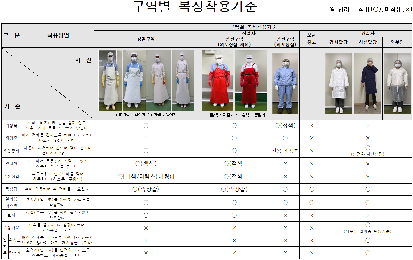 18. 복장 착용 기준이 구비되어 있으며, 관련 규정이 준수되고 있는가