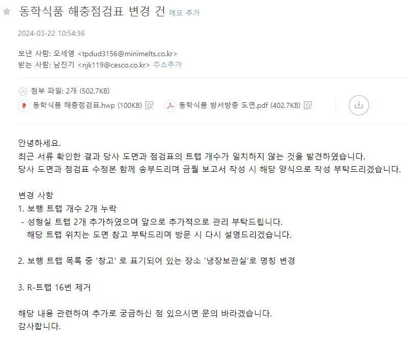 13. 방충/방서 관리 기준이 구비되어 있으며, 적절히 이행되는가