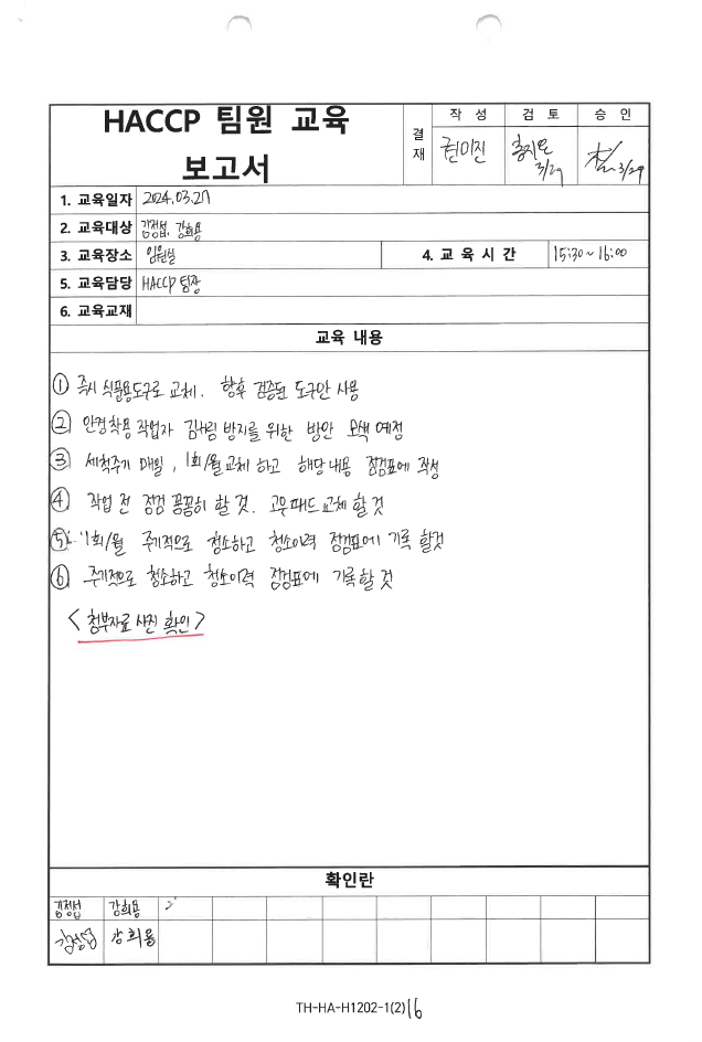 6. 이물 관리 절차가 구비되어 있으며 적절히 운영되고 있는가