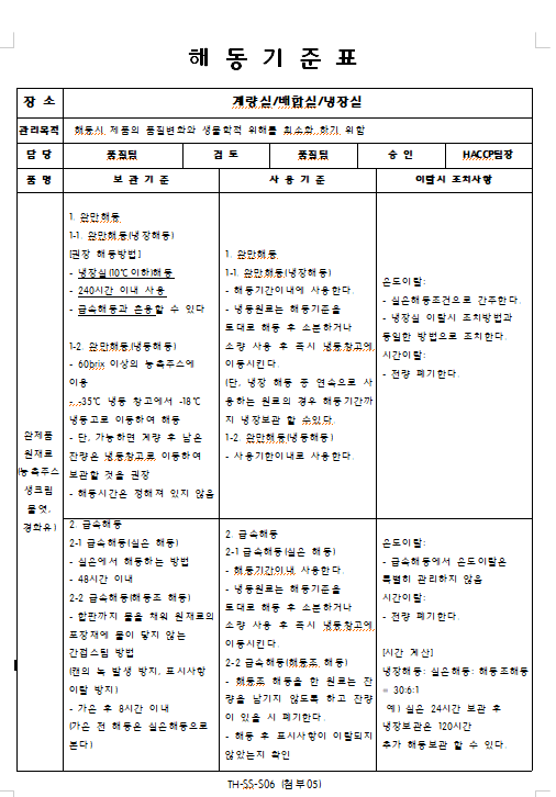 5. 해동 관리 기준이 구비되어 있으며, 적절히 운영되는가