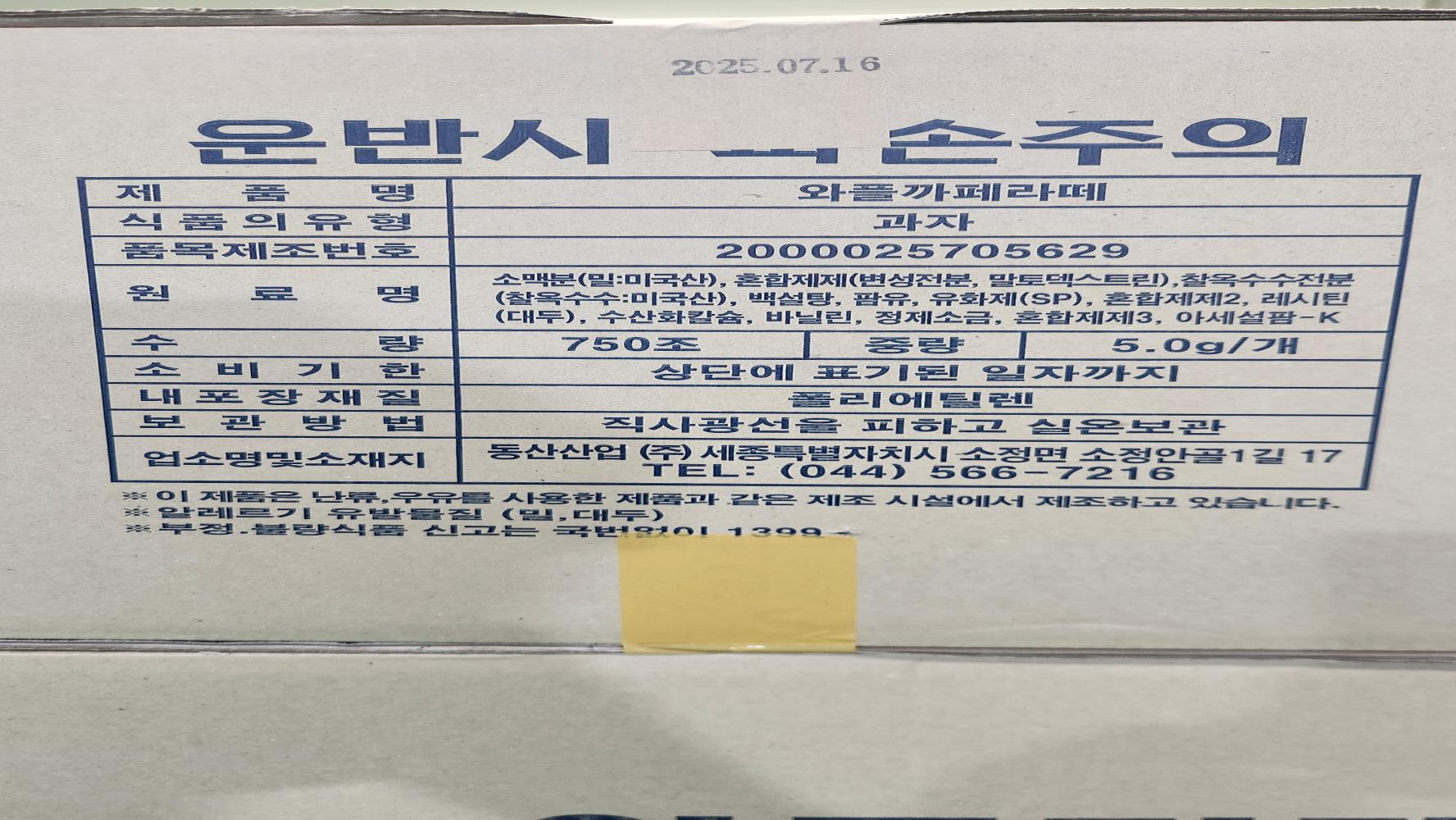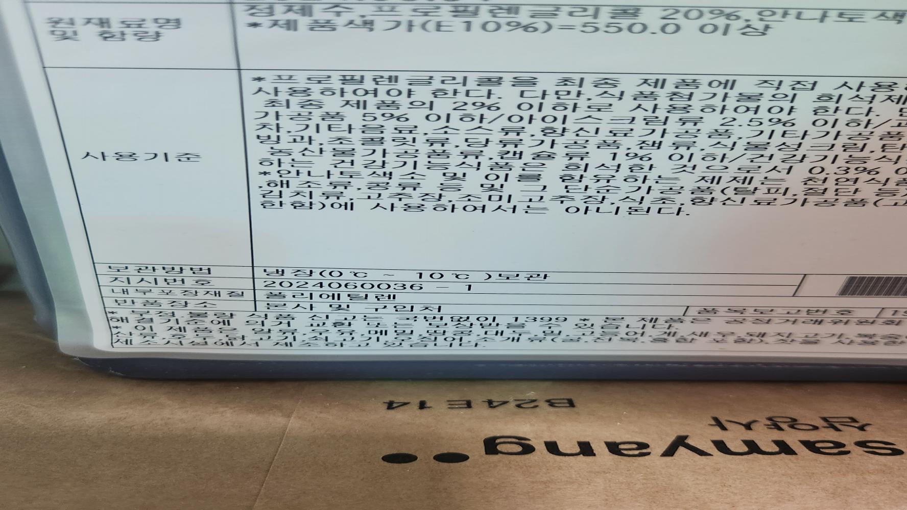 7. 보관/사용 대기 중인 원료 등의 식별표시가 적정한가(반제품, 공정품 포함)