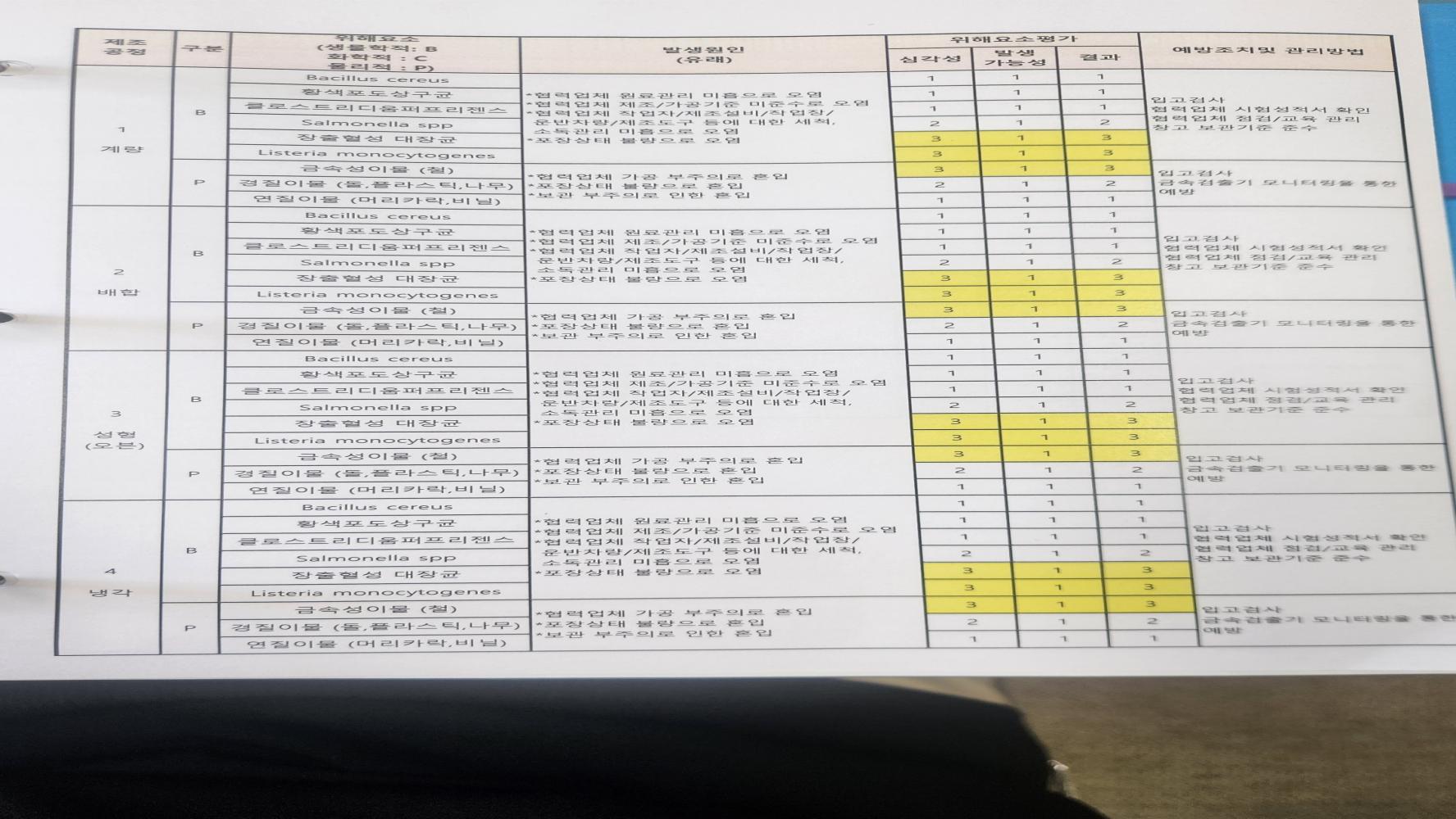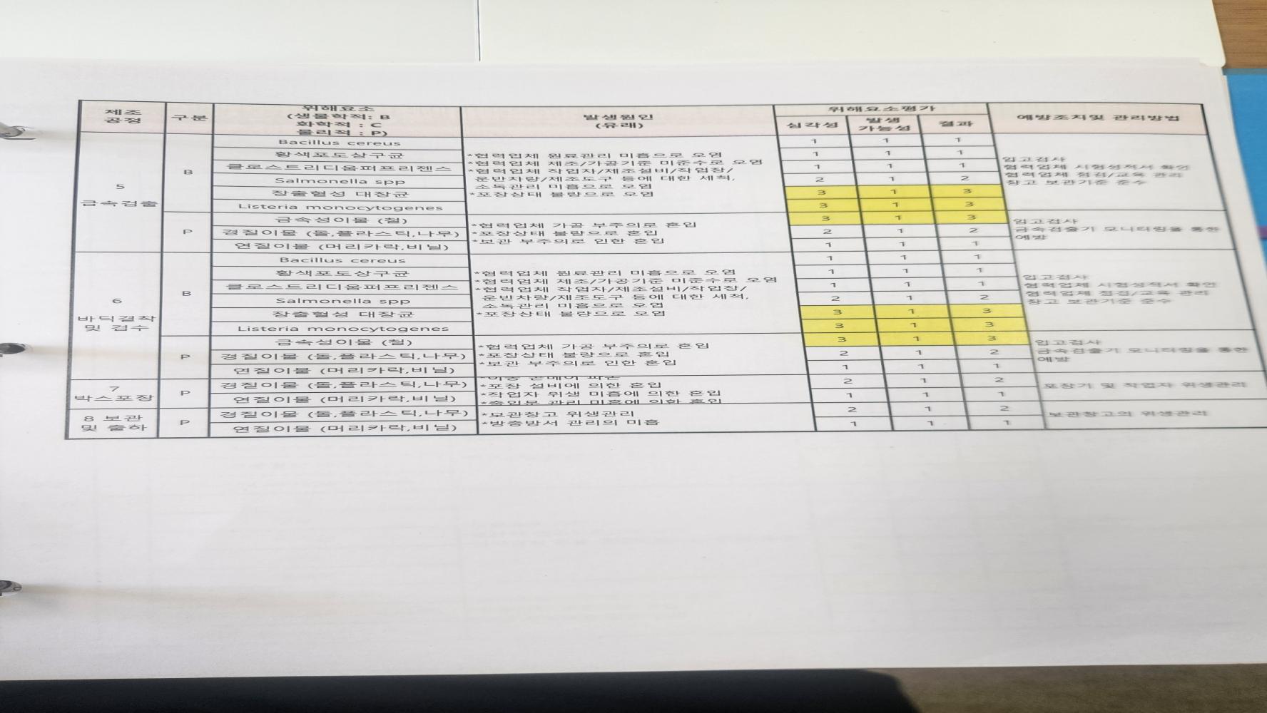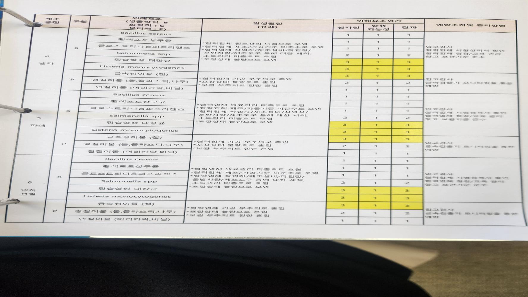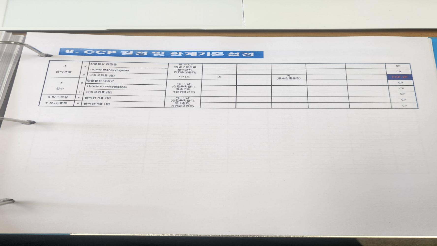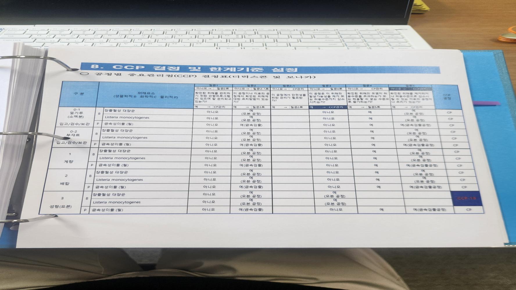 21. 원료별, 공정별 위해요소 분석이 실시되었으며, CCP 결정 및 운영이 적정한가