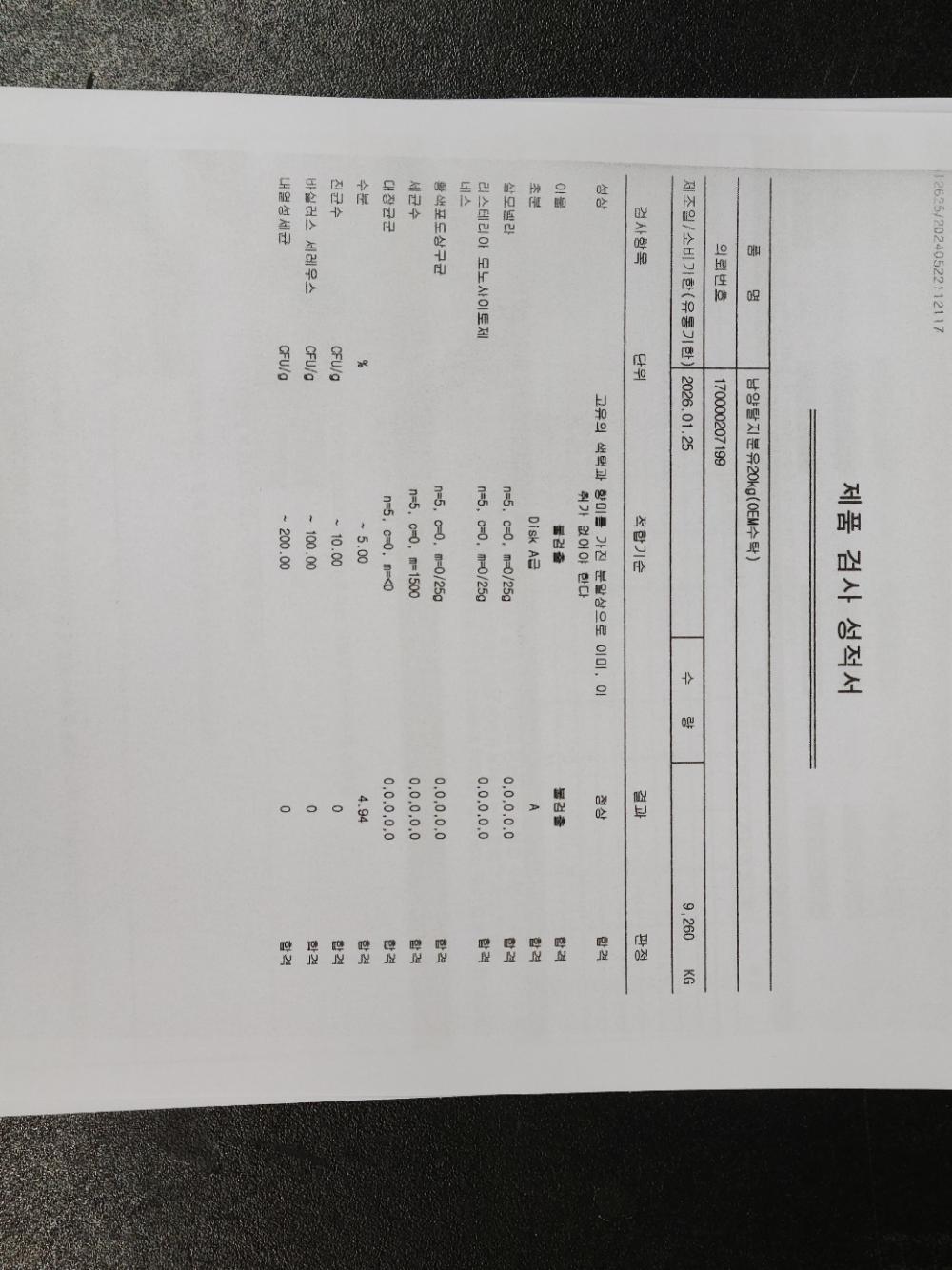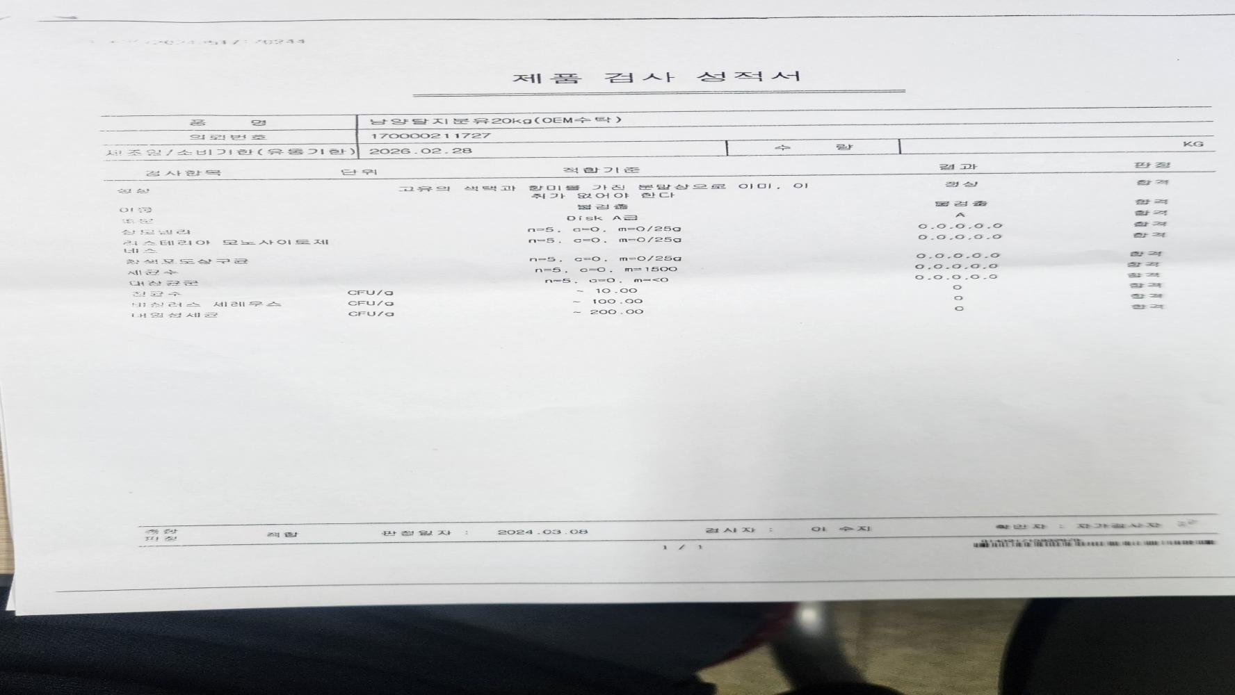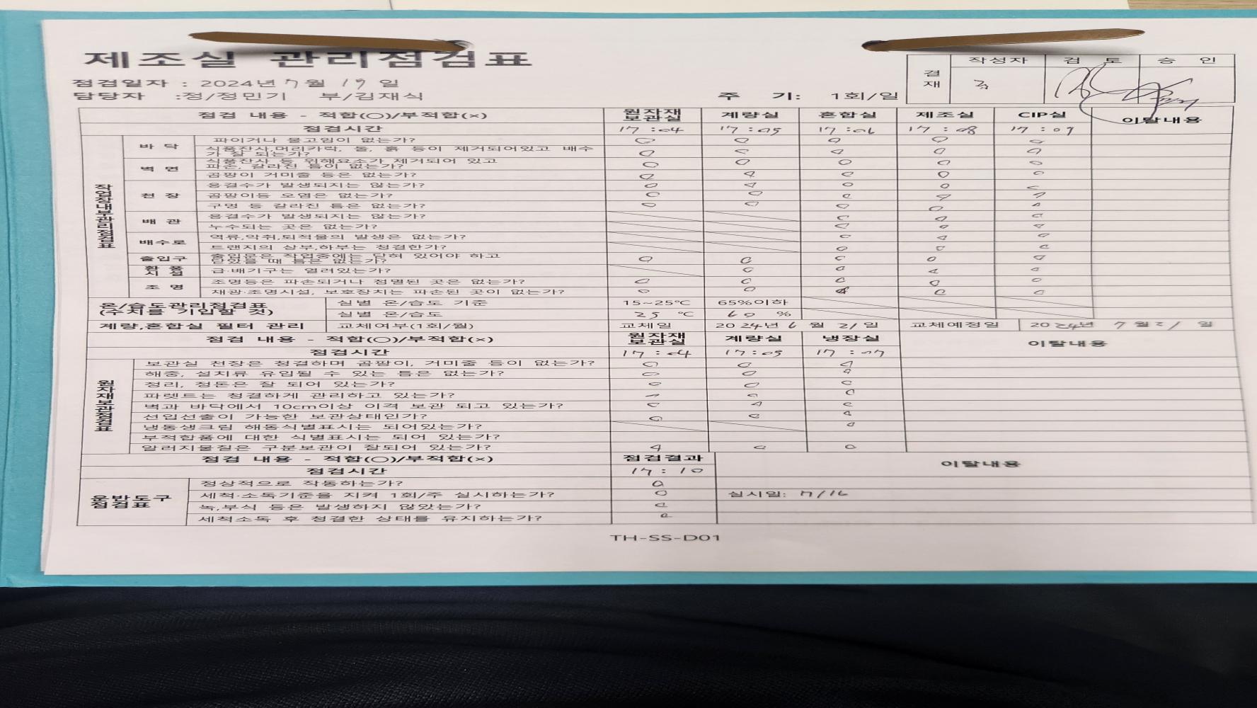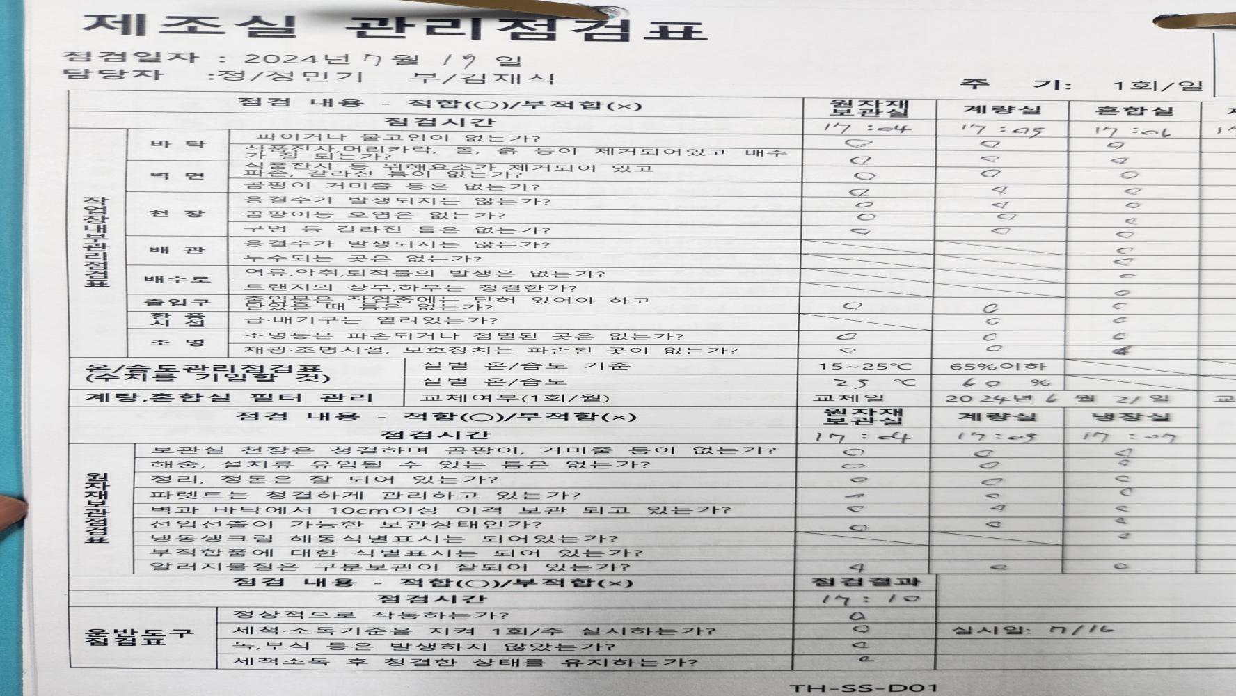 1. 원부재료 및 포장재 입고 검사 및 검수를 실시하고 있는가