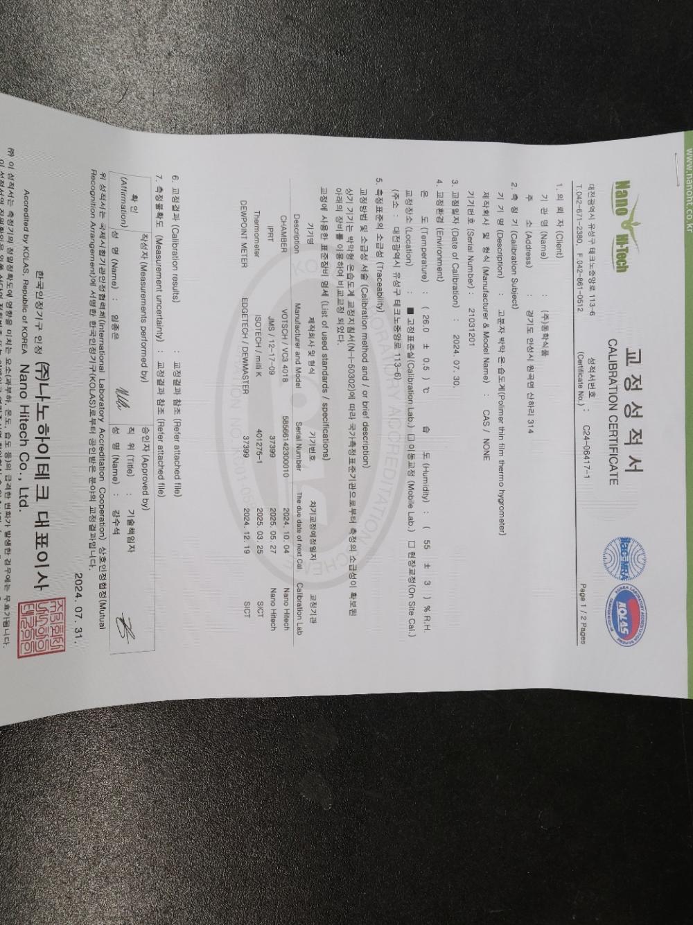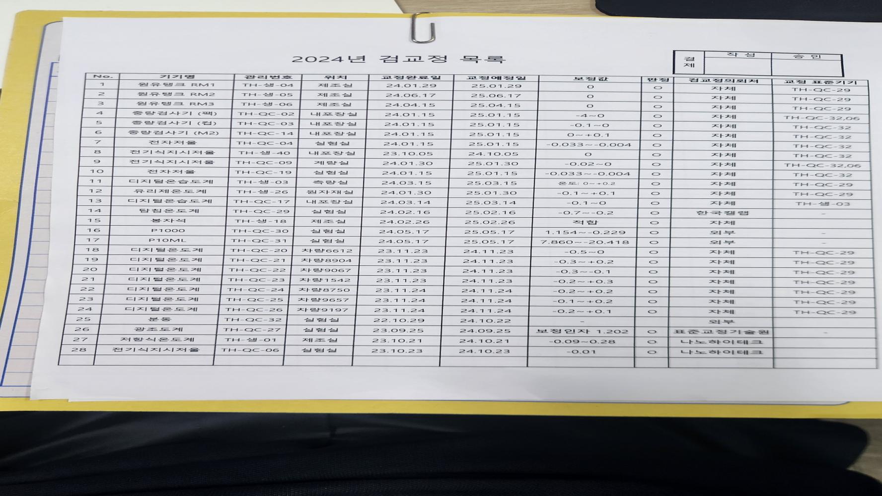 8. 계측 장비는 주기적으로 검교정되며, 관련 기록이 구비되어 있는가