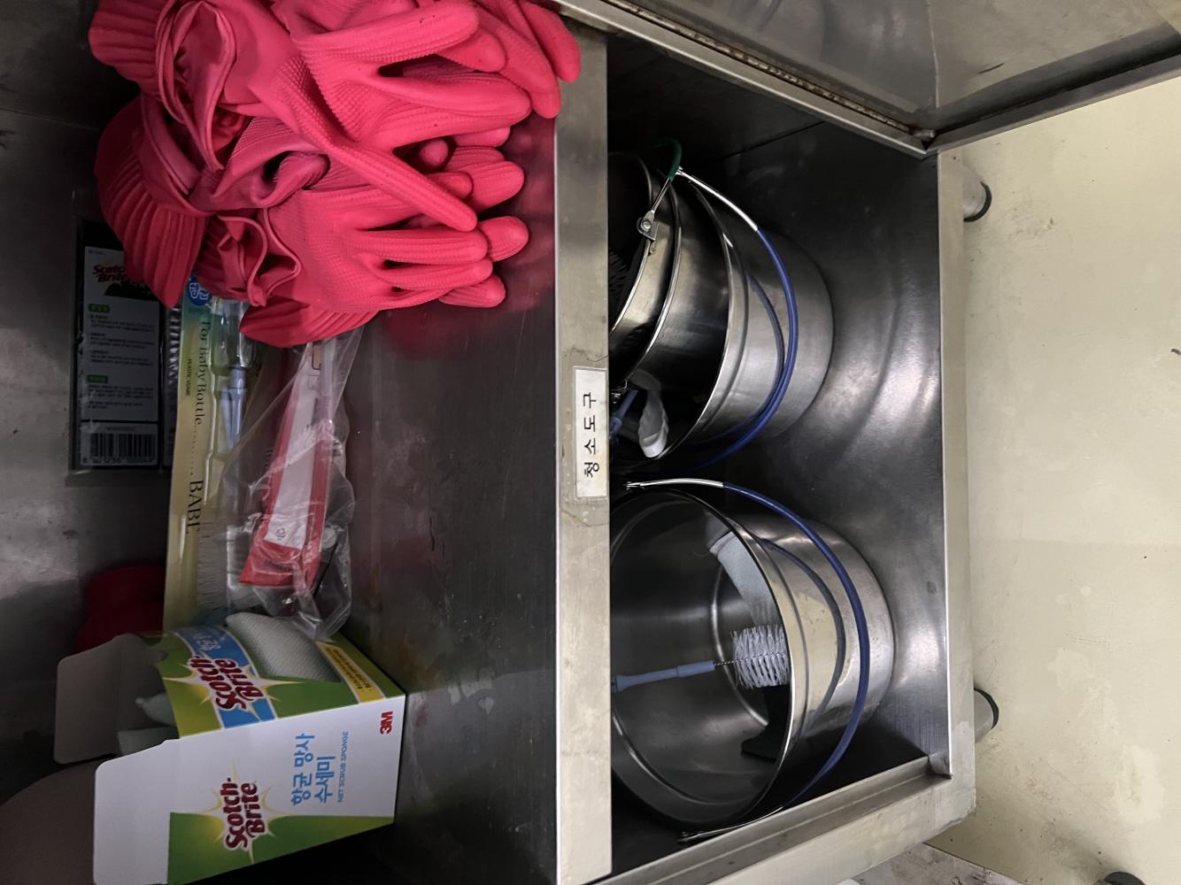 16. 청소 용품은 용도별로 구분되며, 적절히 보관되는가