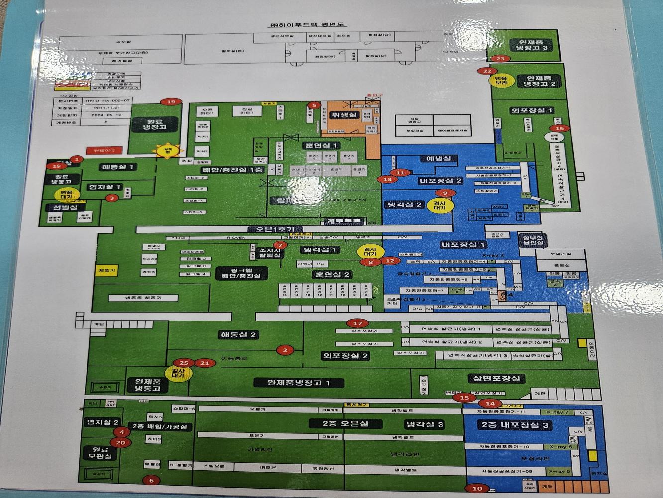 22. 설비는 청결하며, 자체 세척/소독 기준에 따라 관리되고 있는가