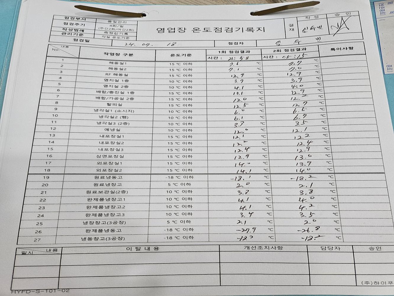 19. 작업 구역별 온/습도 기준이 수립되어 있으며, 적절히 운영되는가