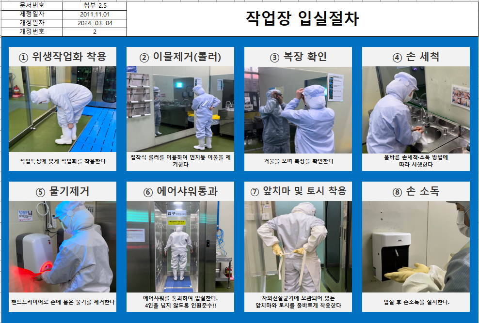 27. 작업장 출입 절차 기준이 구비되어 있으며, 관련 규정이 준수되고 있는가