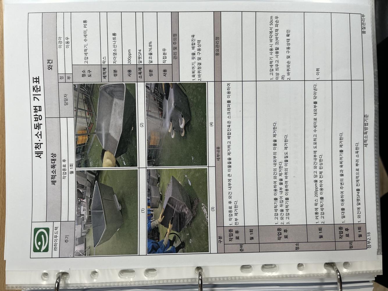 24. 시설 및 설비 등에 대한 세척/소독 관리 기준이 구비되어 있으며, 적절히 운영되는가(CIP 포함)