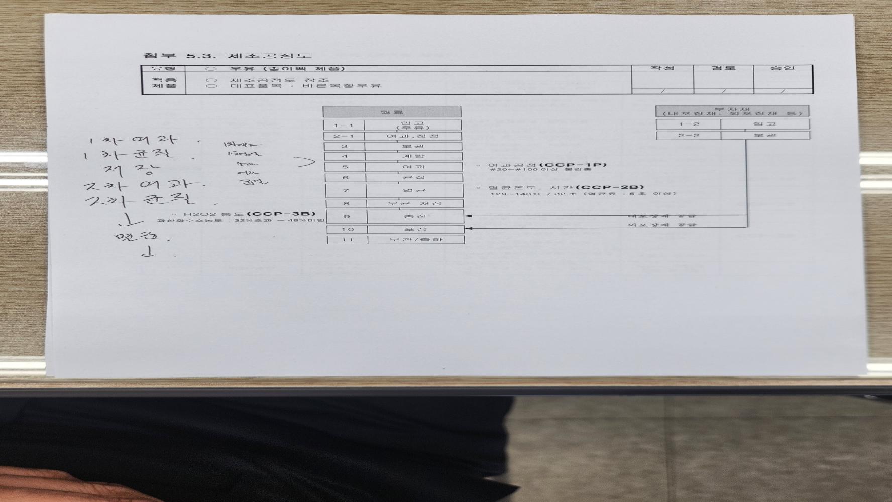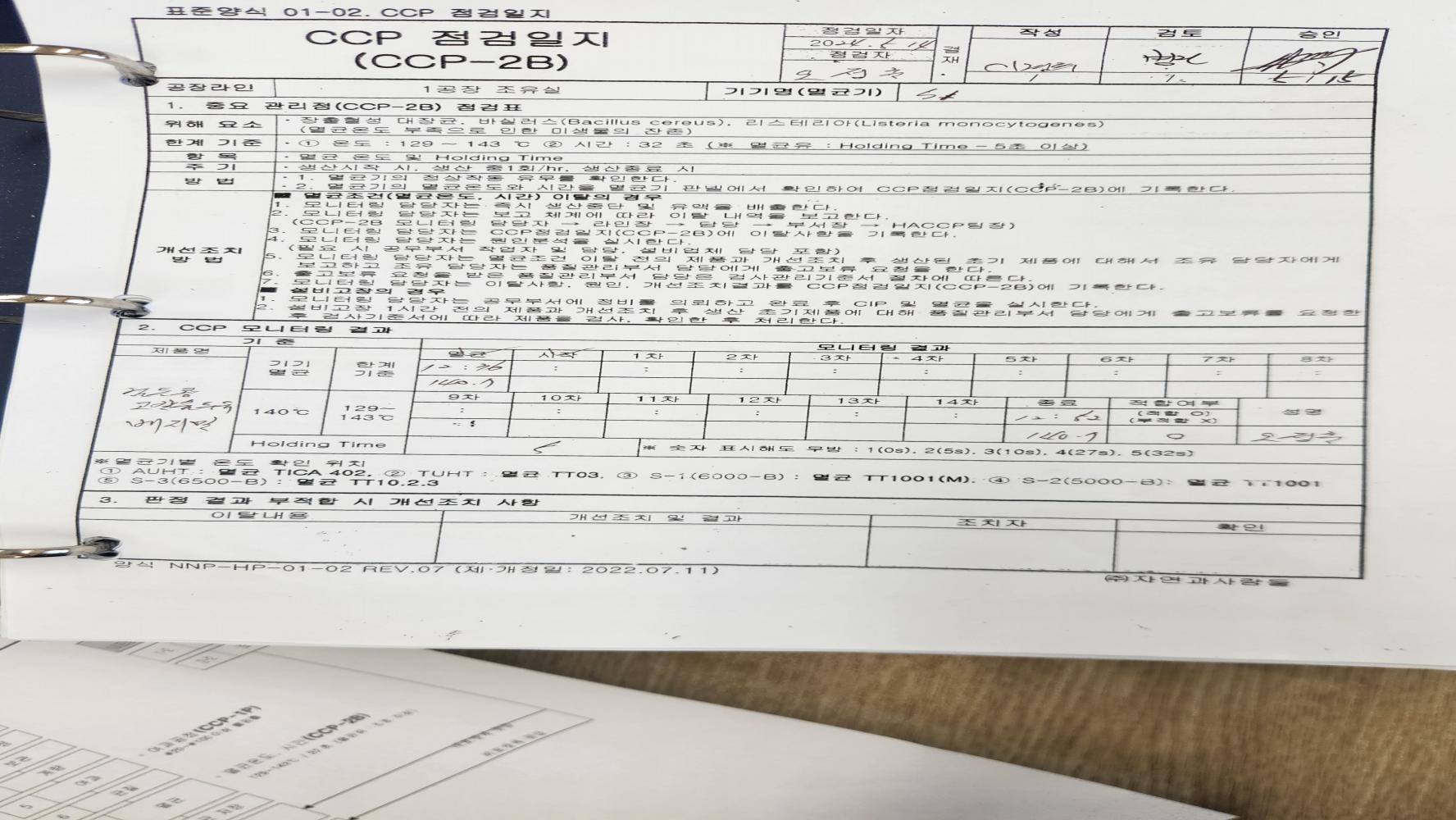 15. 원료별, 공정별 위해요소 분석이 실시되었으며, CCP 결정 및 운영이 적정한가