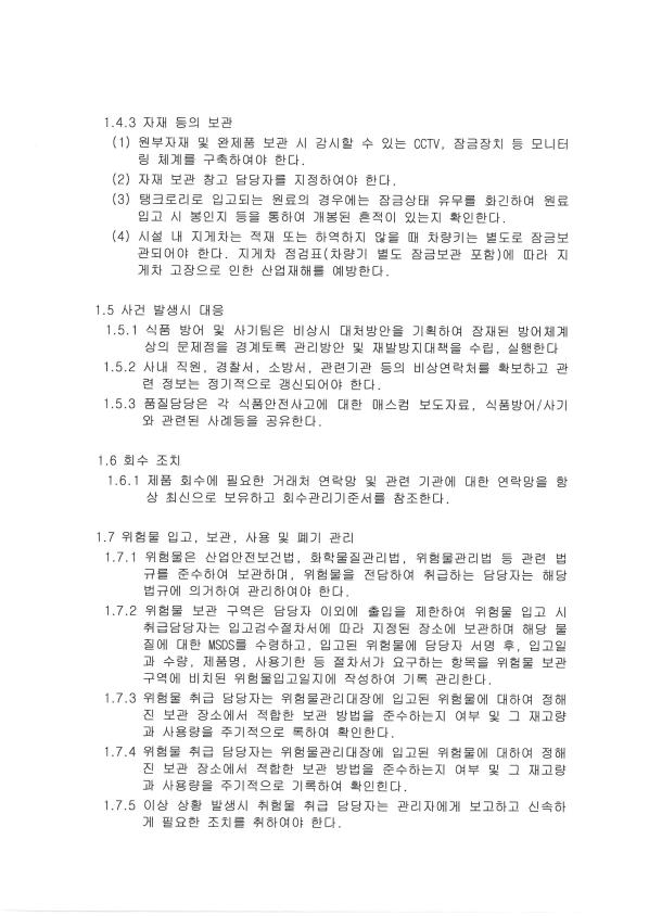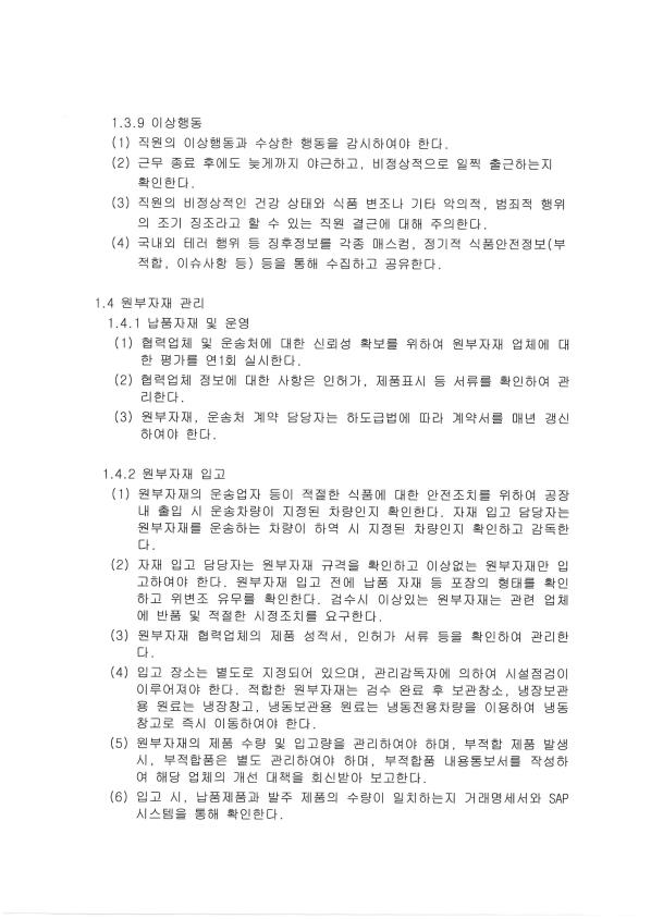 10. 식품 방어 시스템이 구비되어 있으며, 적절히 운영되고 있는가