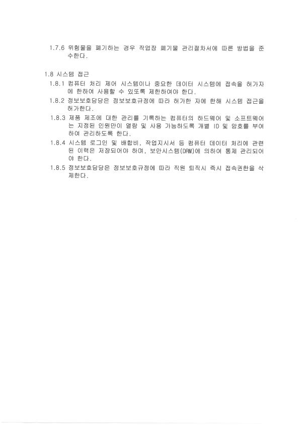 8. 제품별 규격서가 구비되어 있으며, 모니터링이 이행되고 있는가
