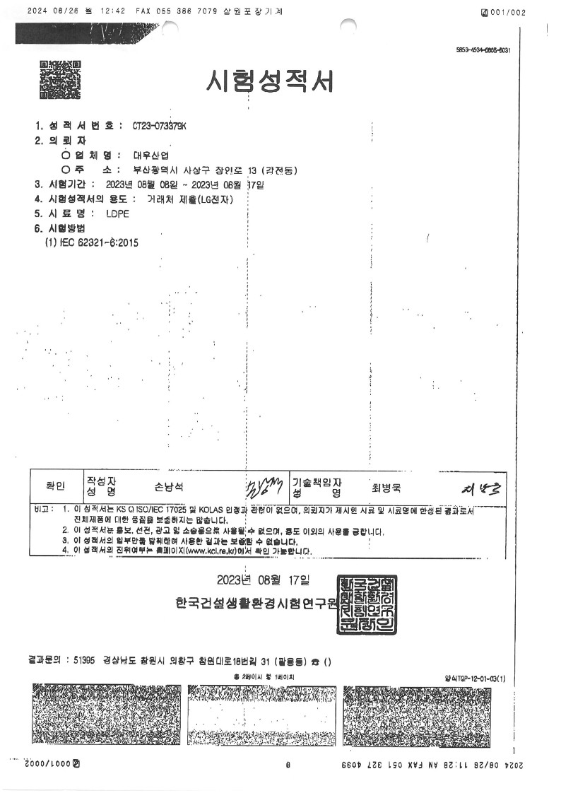5. 원부재료 및 포장재 입고 검사 및 검수를 실시하고 있는가