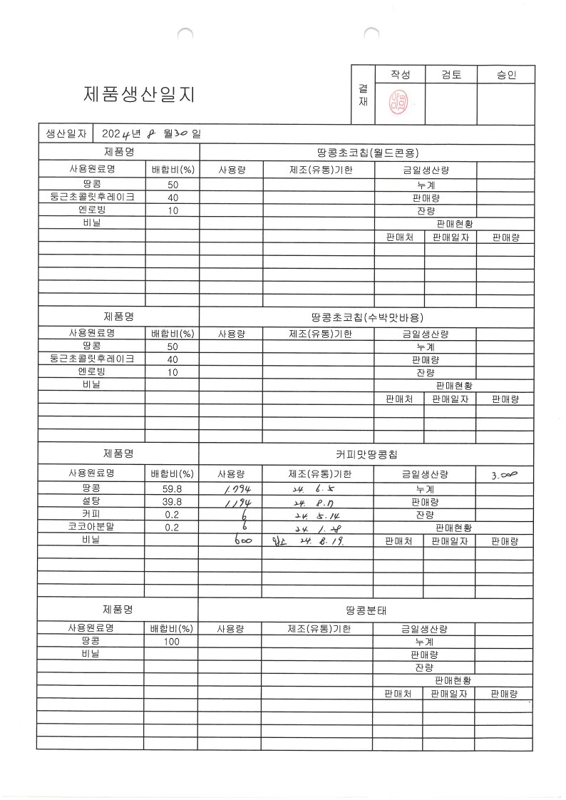 7. 제품별 제조 공정 기준을 준수하고 있는가