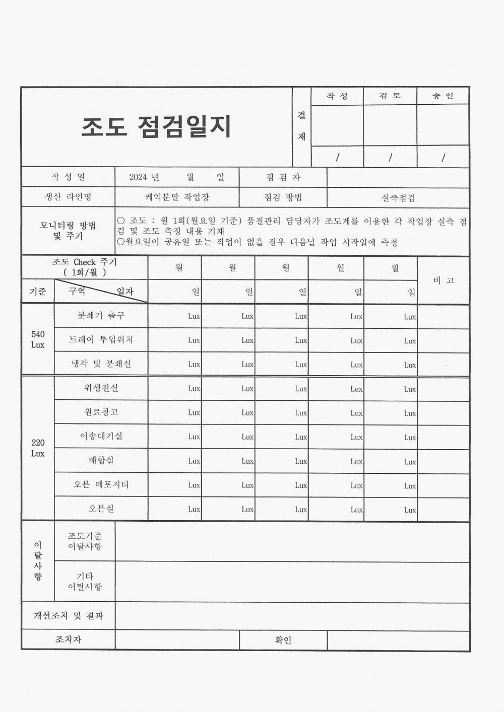 4. 구역별 조도 관리 기준이 구비되어 있으며, 적정 조도가 유지되는가