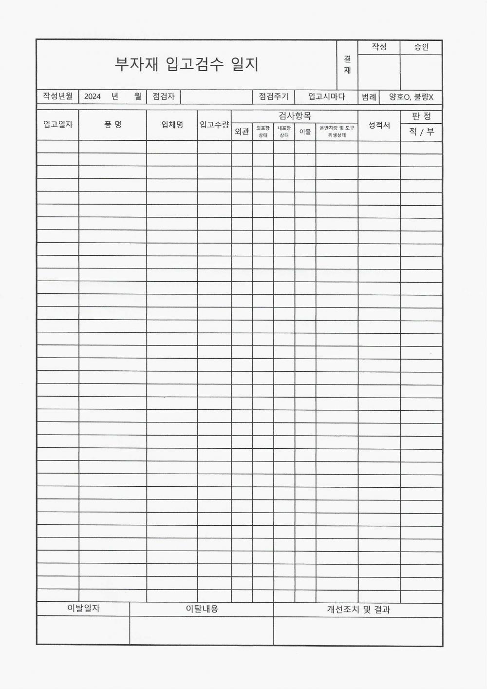 2. 원부재료 및 포장재 입고 검사 및 검수를 실시하고 있는가