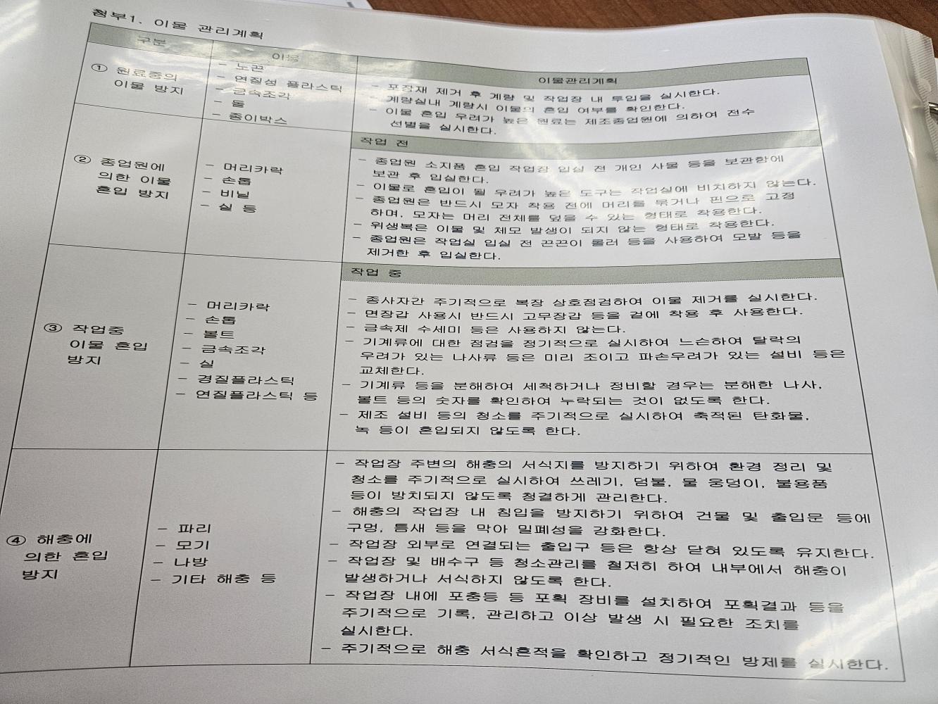 5. 이물 관리 절차가 구비되어 있으며 적절히 운영되고 있는가