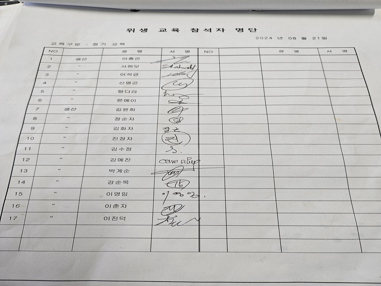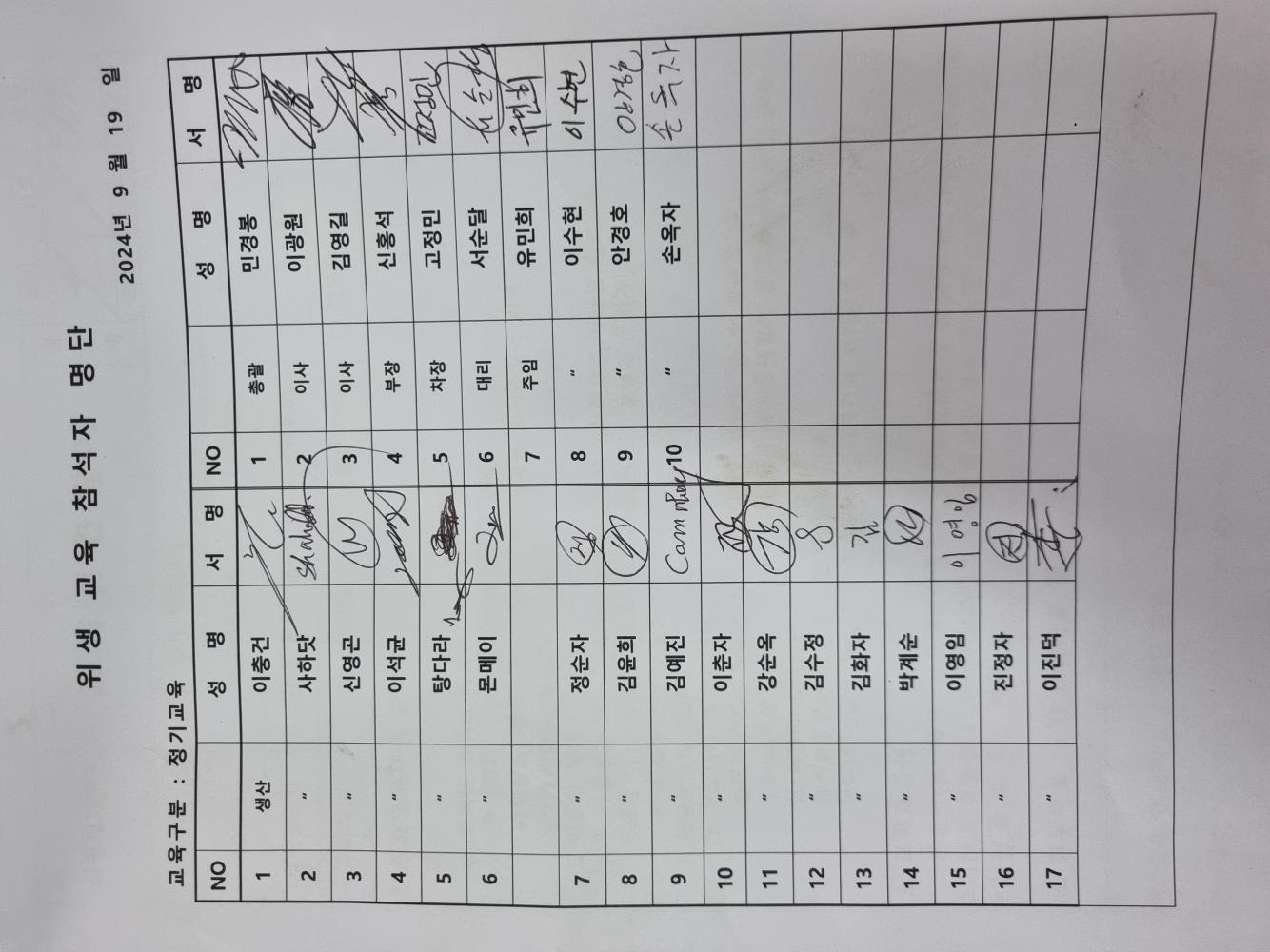 19. 전체 작업자를 대상으로 주기적으로 위생 교육이 실시되고 있는가