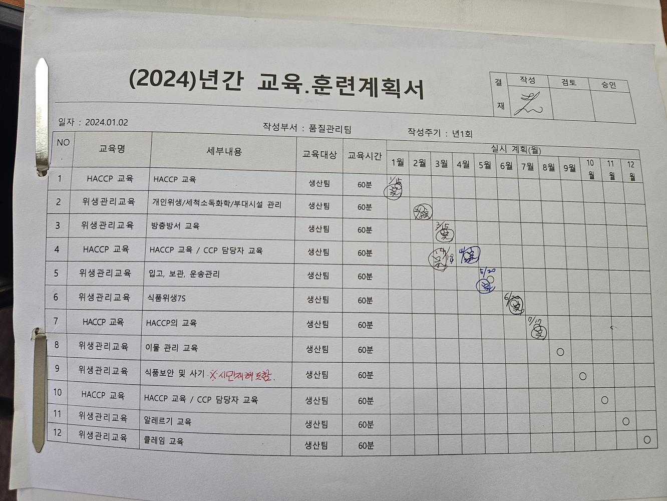 21. HACCP 교육이 주기적으로 이행되고 있는가
