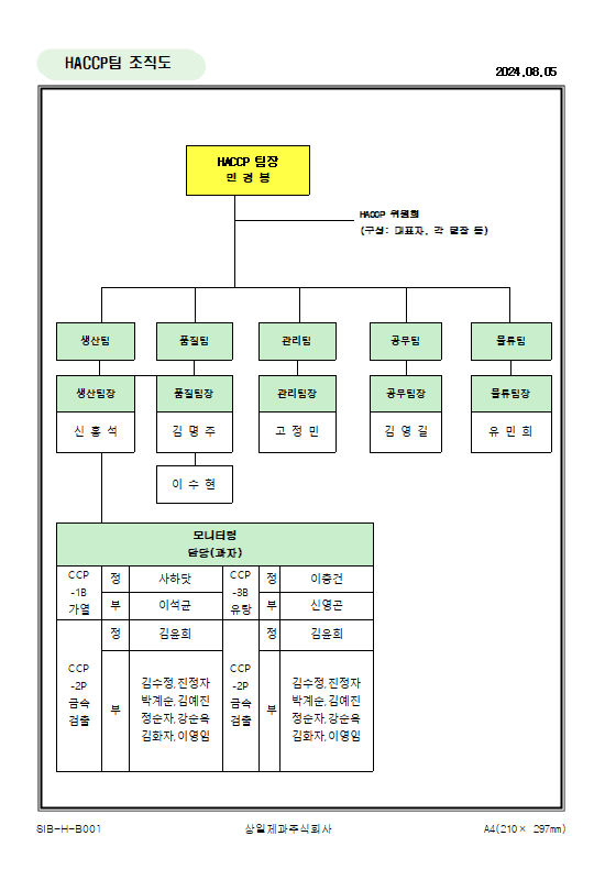 20. HACCP팀은 적절히 구성되어 있으며, 최신 버전으로 업데이트되어 있는가